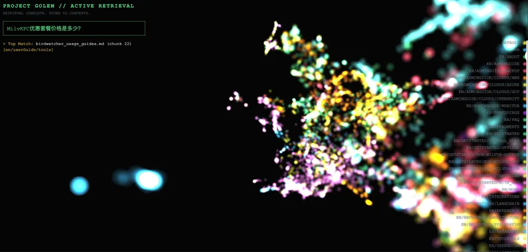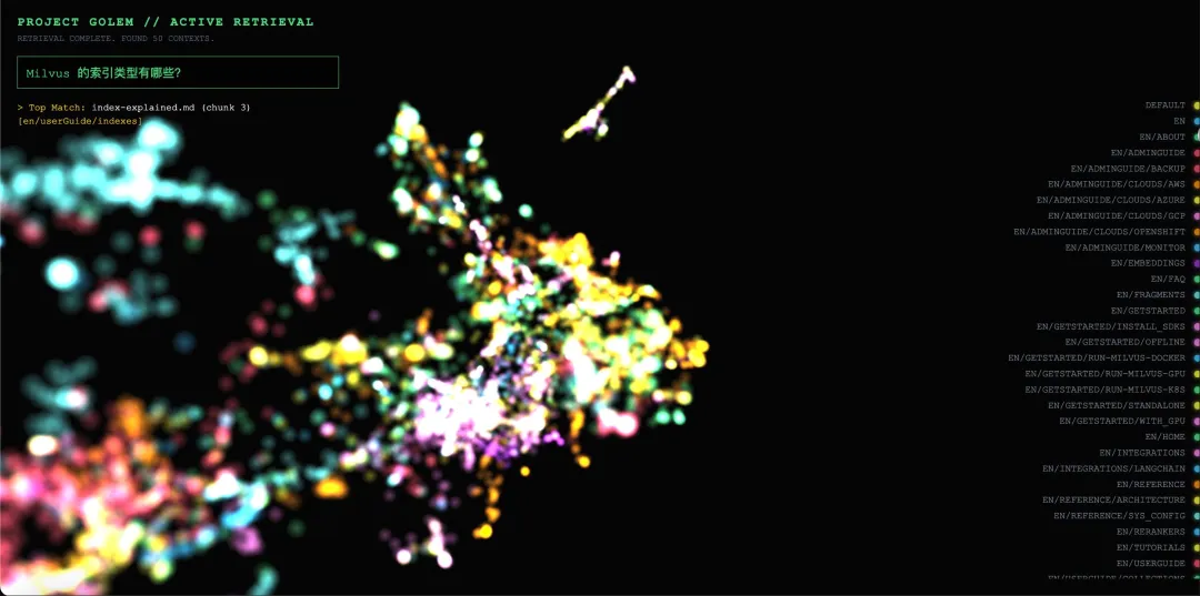 The upgraded Project_Golem is now open source on GitHub. Using the Milvus official documentation as our dataset, we walk through the full process of visualizing RAG retrieval in 3D. The setup uses Docker and Python and is easy to follow, even if you’re starting from scratch.