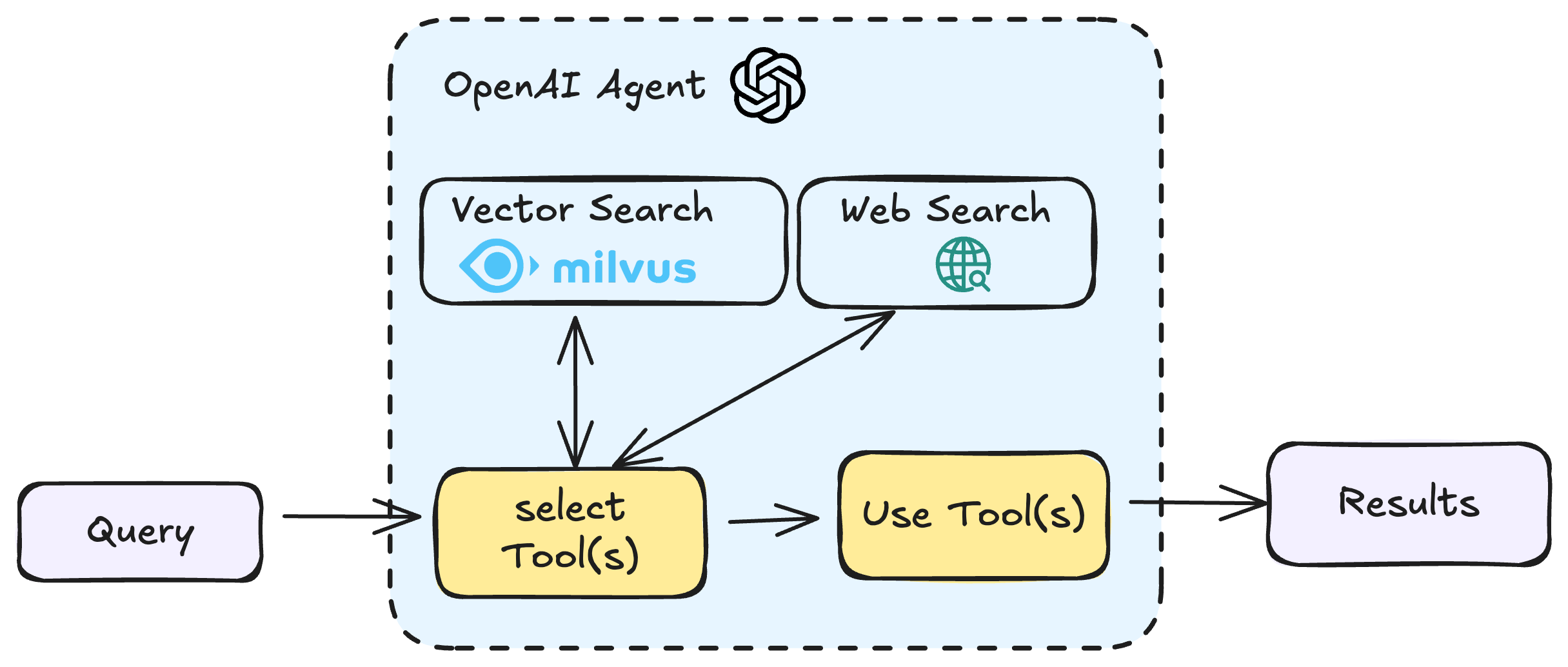 This notebook shows how to create an agent that can query Milvus using natural language through Function Calling. We’ll combine OpenAI’s Agents framework with Milvus’s powerful vector search capabilities to create a nice search experience.